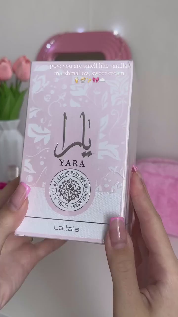 découvrez l'eau de parfum yara de lattafa pour un parfum unique et luxueux. les notes de base sensuelles de musc, de bois de santal et d'ambre donnent à ce parfum une longue durée et une enveloppe enveloppante.